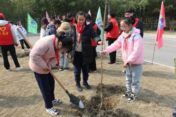 活動(dòng)現(xiàn)場(chǎng)在志愿者的指導(dǎo)下,學(xué)生們分組進(jìn)行植樹。他們手持鐵鍬、水桶等工具,親手挖坑、栽樹、澆水,體驗(yàn)著勞動(dòng)的樂趣和成就感。植樹過程中,學(xué)生們不僅了解了植樹的技巧和意義,更培養(yǎng)了他們的環(huán)保責(zé)任感和團(tuán)隊(duì)協(xié)作精神。
