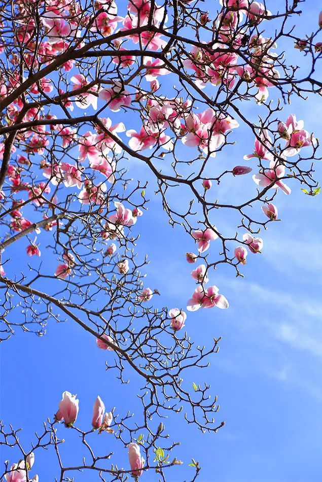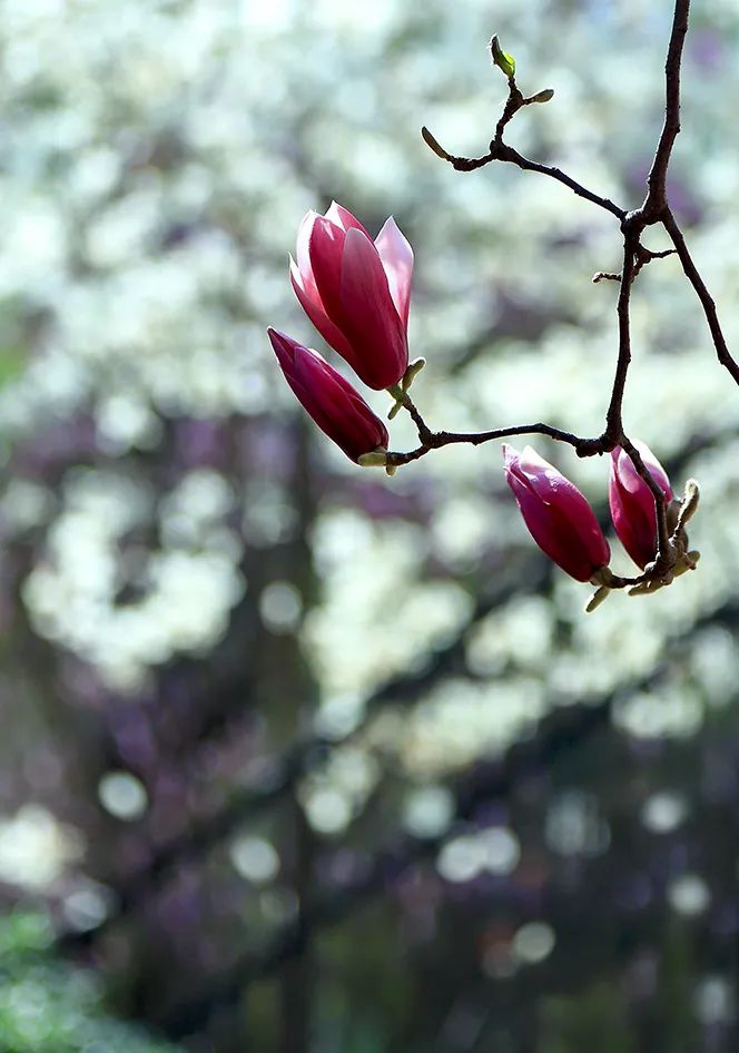 春風(fēng)輕拂,小秦淮河兩岸一株株玉蘭花樹傲然挺立,似白鴿飛舞、如彩蝶翩翩,讓人感受到了溫暖和陪伴。白色的花朵玉潔冰清、輕盈純凈,紫色的花朵燦若云霞、風(fēng)姿綽約,它們相約悄然綻放,以最溫婉的方式宣告春暖花開,以最熱情的方式喜迎賓朋。