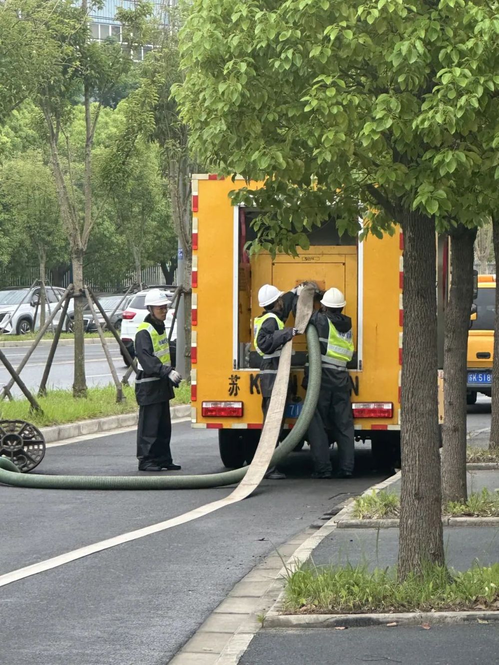 圖為荷葉東路雨天滿溢演練處置現(xiàn)場