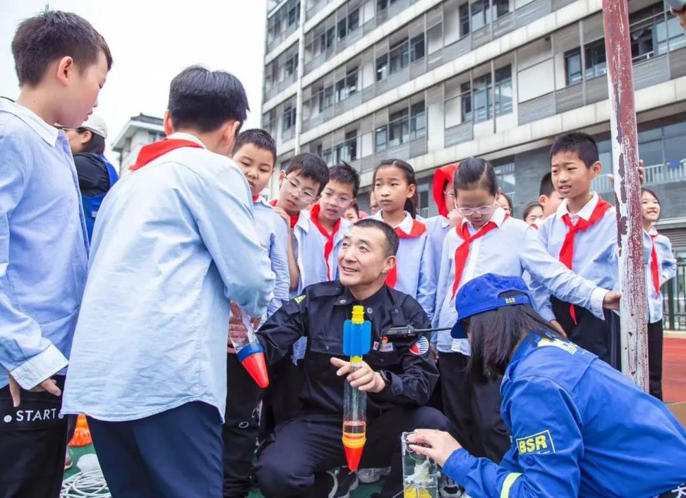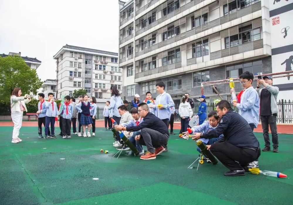 在這場專為1000名師生打造的科普盛宴中,揚州中燃藍(lán)焰志愿者根據(jù)安排負(fù)責(zé)室外“水火箭迫擊炮”項目。為了讓學(xué)生們有更好地體驗感受,藍(lán)焰志愿者們當(dāng)天6:50就來到校園開展準(zhǔn)備工作,在揚州北藍(lán)救援隊專業(yè)人員指導(dǎo)下,熟悉掌握操作流程。隨著科技節(jié)的啟動,大家各司其職、恪守安全要領(lǐng),有的負(fù)責(zé)填充注水、有的負(fù)責(zé)打氣增壓、有的負(fù)責(zé)裝“彈”射擊,確保整個活動有條不紊?!翱萍即嬖诜殴獠?,人人爭相為此來”。學(xué)生們在志愿者的指導(dǎo)下,體驗了“水火箭迫擊炮”發(fā)射的整個過程,同時也了解了“空氣的作用力和反作用力”的實驗原理,每一發(fā)“火箭彈”的成功發(fā)射都引來陣陣哇噻聲。至中午12時許,活動圓滿結(jié)束,藍(lán)焰志愿者用行動在孩子們心中撒下科學(xué)的種子,營造出了熱愛科學(xué)、崇尚科學(xué)的氛圍。