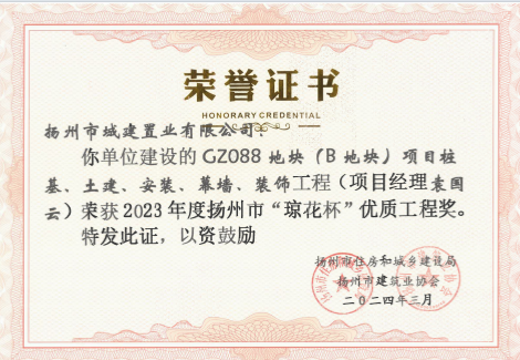 近日,揚(yáng)州市建筑業(yè)協(xié)會(huì)傳來(lái)喜訊,由置業(yè)公司開(kāi)發(fā)的GZ088地塊嘉都匯項(xiàng)目榮獲“2023年度揚(yáng)州市瓊花杯優(yōu)質(zhì)工程獎(jiǎng)”。