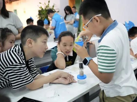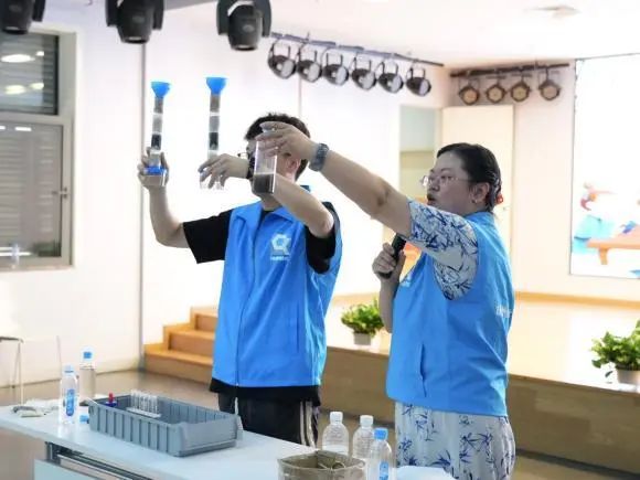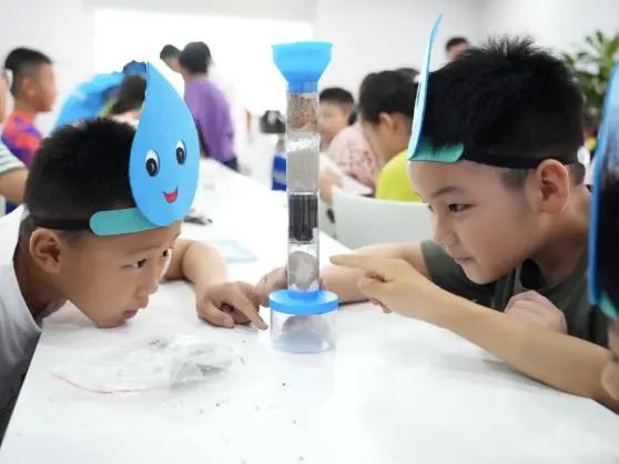 在工作人員的指導下,小朋友們還親自動手參與水的凈化等科學小實驗,體驗了水從渾濁到清澈的神奇轉(zhuǎn)變過程。