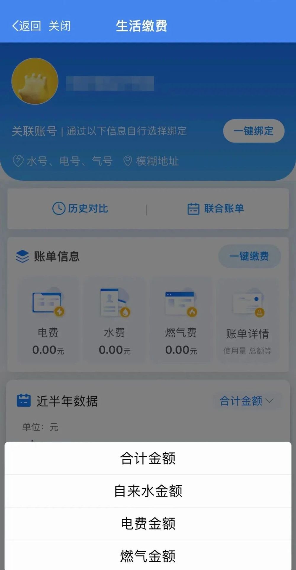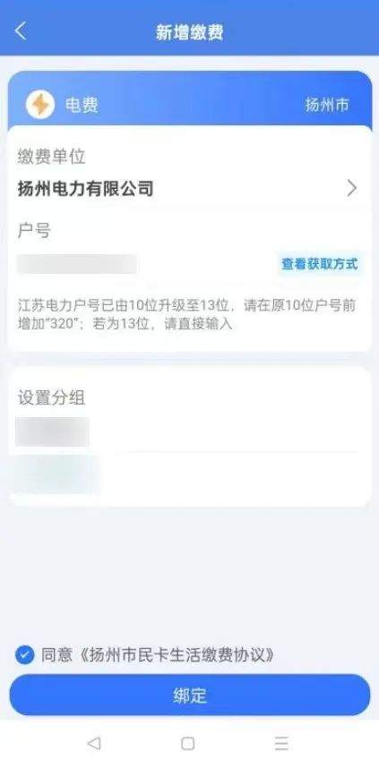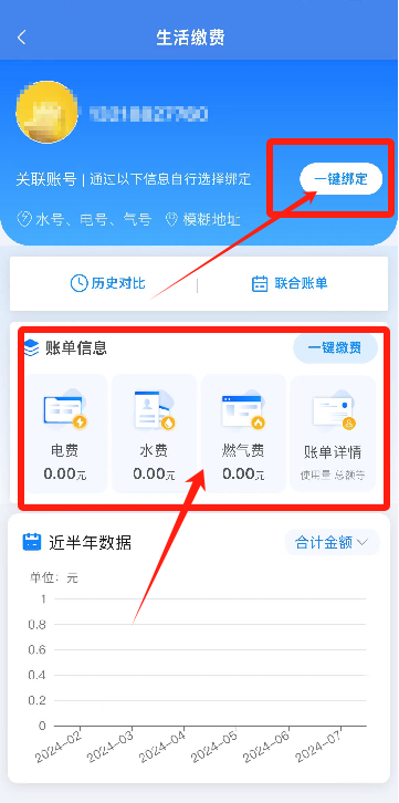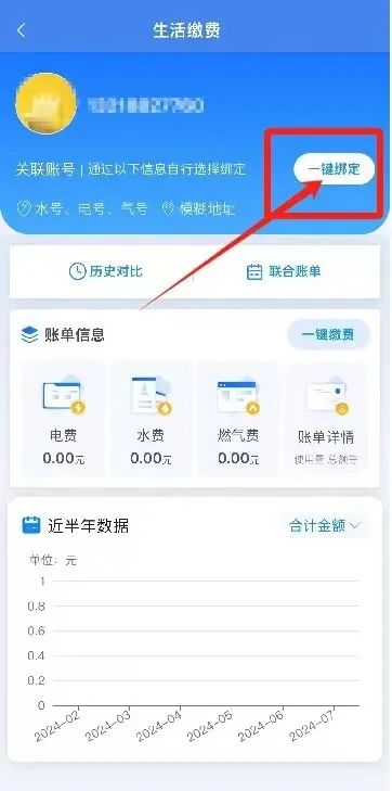 如您需要為其他賬號繳費(fèi),可點(diǎn)擊一鍵綁定,選擇對應(yīng)繳費(fèi)類別添加新賬號。