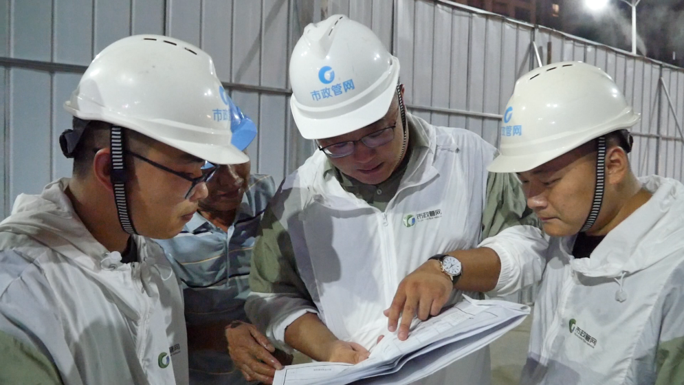 凌晨?jī)牲c(diǎn),城市進(jìn)入夢(mèng)鄉(xiāng),只剩蛙叫蟬鳴。邗江北路積水點(diǎn)施工現(xiàn)場(chǎng)依然一片火熱,管網(wǎng)運(yùn)營(yíng)二所熊永祺與工程建設(shè)處儲(chǔ)智毅、張和鵬三人正在討論著施工圖紙。為保證工程進(jìn)度,市政管網(wǎng)公司采取“干兩頭、歇中間”的工作方法,避開中午高溫,夜間多趕工,保質(zhì)量,搶工期。工程建設(shè)處張和鵬介紹,今年,我市已經(jīng)啟動(dòng)了一系列針對(duì)城市易澇積水點(diǎn)的綜合整治工作,管網(wǎng)公司亦積極投身其中,改造并優(yōu)化相關(guān)積水點(diǎn)的管網(wǎng)系統(tǒng)與溝渠設(shè)施,從根本上解決積水問(wèn)題。