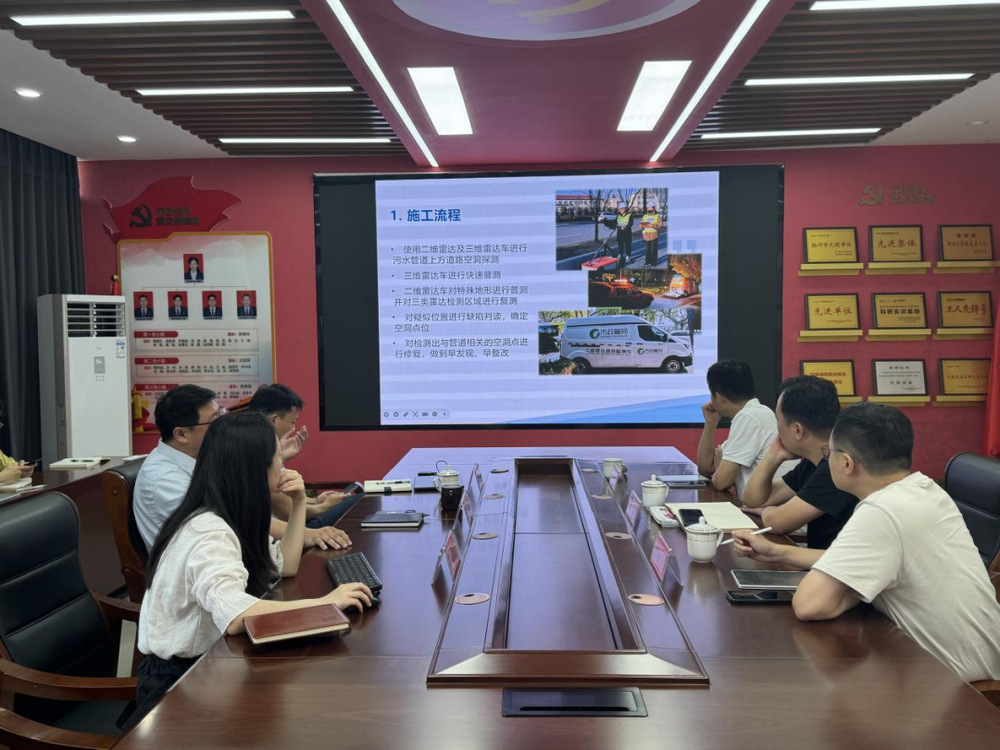 會上,管網(wǎng)公司重點介紹了雷達空洞探測的情況,深入解讀了雷達探測空洞技術(shù)導則,對雷達探測空洞專項工作的部署與探測成果以及空洞整改情況進行了詳細介紹,雙方重點針對排水管網(wǎng)缺陷引起的道路坍塌的處置經(jīng)驗進行了交流,通過具體案例的剖析,雙方對于缺陷排查和應急處置有了更深的理解。隨后雙方就污水提質(zhì)增效、管道全生命周期管理以及信息化管理等方面進行了深入探討。