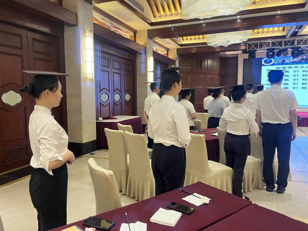 為規(guī)范酒店員工行為,提升服務(wù)意識(shí),樹立良好的儀容儀表形象,優(yōu)化對(duì)客服務(wù)質(zhì)量,8月22日,長(zhǎng)樂客棧組織開展第二期金管家服務(wù)禮儀專項(xiàng)培訓(xùn)。一線職工和管理人員共計(jì)60余人參加培訓(xùn)。