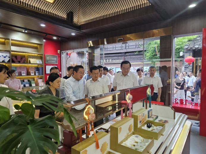 王立平一行沿東關(guān)古街,實(shí)地察看周邊風(fēng)貌,了解街區(qū)歷史沿革和文旅資源保護(hù)利用等情況,深入冬榮園、謝馥春、街南書屋、揚(yáng)州漆器廠等店鋪商家,聽取情況介紹,詳細(xì)了解街區(qū)招商、老字號(hào)傳承、文商旅產(chǎn)業(yè)融合工作所取得的成效,并對(duì)揚(yáng)州城控集團(tuán)堅(jiān)持保護(hù)與利用、改造與復(fù)興、傳承與發(fā)展相結(jié)合理念,扎實(shí)推進(jìn)古城項(xiàng)目建設(shè)和經(jīng)營(yíng)管理方面取得的成績(jī)予以了充分肯定。