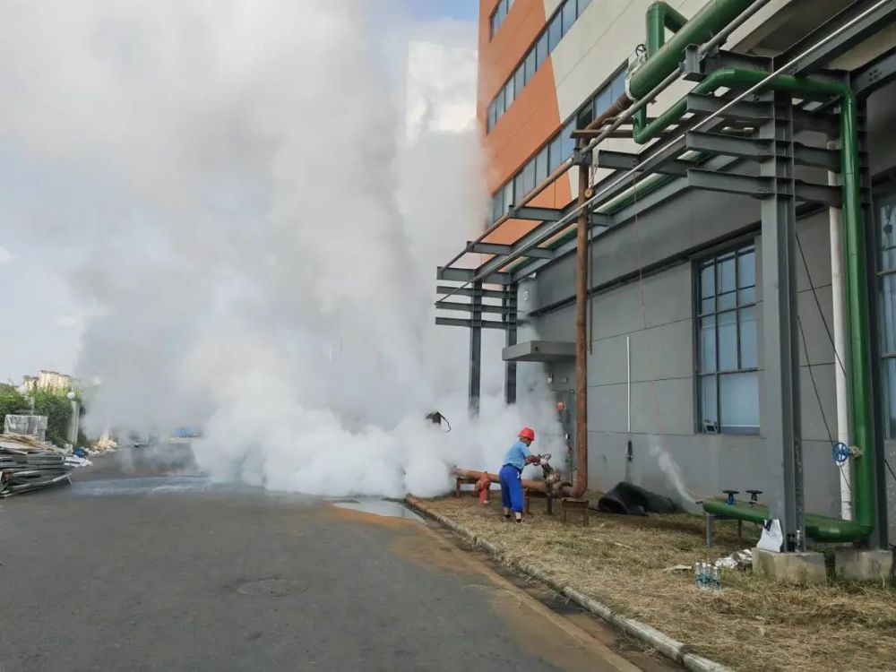 9月13日下午時分,轟鳴聲驟然響起,一縷潔白的蒸汽如龍般從供熱管道中噴涌而出。經(jīng)過連續(xù)一天的緊張作業(yè),領(lǐng)煌科技內(nèi)部的供熱工程順利完成了沖管吹掃工作。