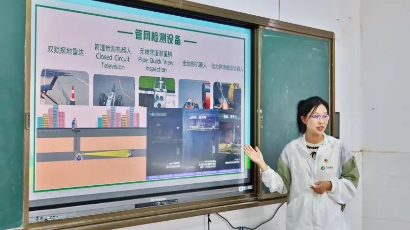 接著,890管網(wǎng)服務(wù)隊的“管道醫(yī)生”通過介紹和操作管網(wǎng)檢測設(shè)備,使學(xué)生們直觀地認(rèn)識到這些“醫(yī)療設(shè)備”在市政雨、污水管網(wǎng)缺陷排查和診斷中的重要作用。
