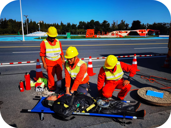 演練模擬污水管網(wǎng)下井清淤作業(yè)過程中井下人員發(fā)生意外,疑似吸入有毒有害氣體出現(xiàn)中毒昏迷狀況?!半U情”發(fā)生后,指揮組立即啟動有限空間應(yīng)急響應(yīng),各應(yīng)急救援小組立即按照有限空間應(yīng)急救援預(yù)案開展救援。救援人員利用被困人員自身攜帶的安全繩,通過救援三腳架將被困人員移出井外,轉(zhuǎn)移至安全區(qū)域,進(jìn)行心肺復(fù)蘇,確認(rèn)中毒人員恢復(fù)意識后,送往醫(yī)院進(jìn)一步治療。演練結(jié)束后,公司安全總監(jiān)對此次演練給予充分肯定,認(rèn)為演練過程各應(yīng)急小組密切配合,反應(yīng)迅速,達(dá)到預(yù)期演練效果。