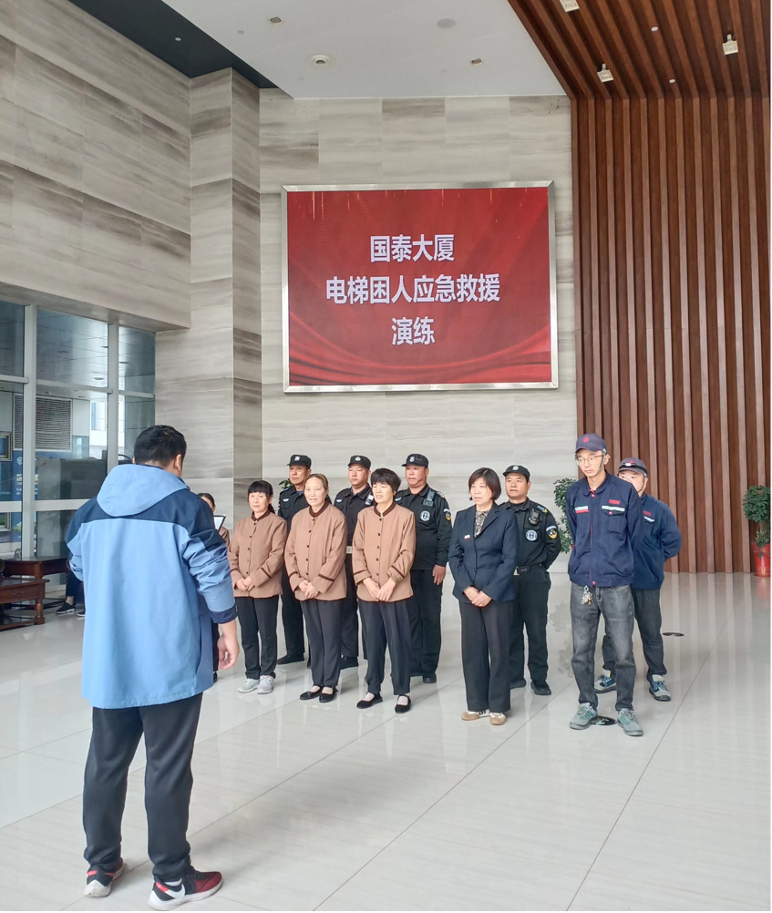 為進(jìn)一步增強(qiáng)業(yè)主乘坐電梯的安全防范意識,提高突發(fā)事件的應(yīng)變能力,同時為提高物業(yè)工作人員處置突發(fā)事件的應(yīng)急能力,掌握突發(fā)事件的崗位職責(zé)和處理流程。10月11日上午,國泰大廈物業(yè)服務(wù)中心聯(lián)合電梯維保單位在國泰大廈2號樓開展電梯困人應(yīng)急救援實戰(zhàn)演練。