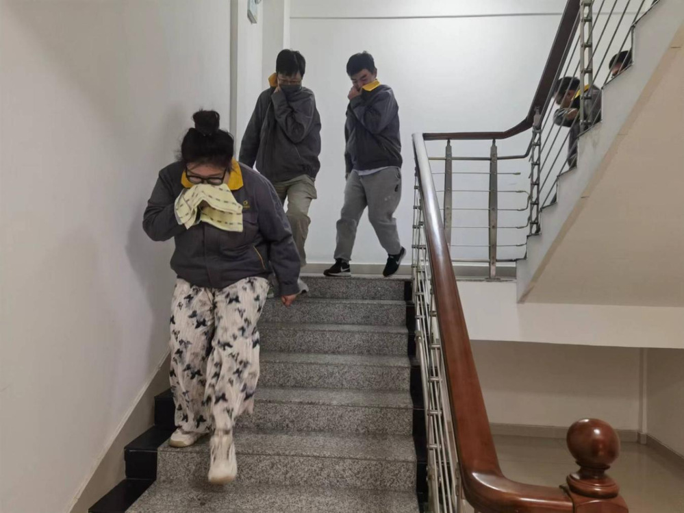 隨著警報聲響起,演練正式開始。全體參演人員迅速進入應急狀態(tài),按照既定的疏散路線開始疏散,在各部門疏散組織者的指揮下,全體員工用濕毛巾和衣物捂住口鼻,彎腰低姿,快速而有序地撤離辦公樓,沿著指定的疏散路線向安全集合點前進。在規(guī)定的時間內(nèi)到達安全集合點后,各部門疏散組織者迅速清點人數(shù),并向演練總指揮報告情況,整個疏散過程緊張有序,按預定方案完成演練。演練活動結(jié)束后,演練總指揮做了總結(jié)和點評,鞏固提高此次疏散逃生演練活動的效果。