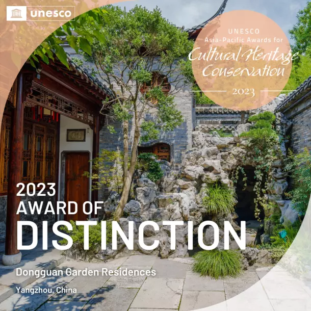 東關(guān)歷史文化街區(qū)位于揚州明清古城東北隅,東起古運河,西至國慶路,南臨文昌中路,北達鹽阜東路,面積3.4平方公里,是城內(nèi)迄今保存最為完整、規(guī)模最大的歷史文化街區(qū)。街區(qū)沿線歷史遺存薈萃,其中個園、汪氏小苑、唐宋東門遺址、逸圃為國家級文物保護單位,曹起溍故居、壺園、劉文淇故居、丁姓鹽商住宅等為市級文物保護單位。2023年末,聯(lián)合國官網(wǎng)發(fā)布了《2023年亞太文化遺產(chǎn)保護獎獲獎?wù)呙麊巍贰!皷|關(guān)歷史文化街區(qū)園宅保護與傳承復(fù)興項目”從亞太地區(qū)8個國家48個參賽項目中脫穎而出,獲評聯(lián)合國教科文組“2023年度亞太文化遺產(chǎn)保護獎杰出獎”。是全國唯一獲得“杰出獎”的文保項目。聯(lián)合國教科文組織在項目評審語中寫到“東關(guān)歷史文化街區(qū)是傳統(tǒng)文化與當(dāng)代景觀設(shè)計的完美結(jié)合,為亞太地區(qū)古典園林保護及活化利用提供了重要參考”。