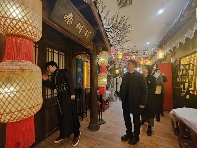 隨后,殷仕寶一行調(diào)研了“浮光”機關(guān)劇場,店內(nèi)獨特的謎題設(shè)計、精美的場景布置以及緊密圍繞地方特色打造的故事線給大家留下了深刻的印象。殷仕寶在與資產(chǎn)公司主要負責人深入交流中,了解了該項目在團隊建設(shè)、市場推廣方面的情況和面臨的挑戰(zhàn)。殷仕寶表示這種將傳統(tǒng)文化與現(xiàn)代科技相結(jié)合的沉浸式體驗?zāi)J?,為文化?chuàng)新產(chǎn)業(yè)帶來了新的思路和啟發(fā)。