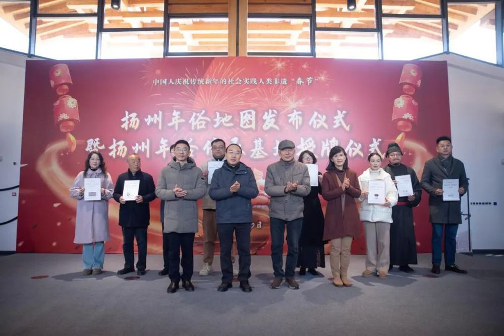 2025年1月10日上午,由揚州年俗保護單位揚州文藝家志愿者協(xié)會精心策劃的揚州年俗地圖發(fā)布儀式暨揚州年俗傳承基地授牌活動在小秦淮劇場熱烈開啟,為即將到來的新春佳節(jié)奏響了激昂序曲,也為揚州非物質(zhì)文化遺產(chǎn)傳承與發(fā)展注入了新的活力。揚州市文聯(lián)黨組書記、文聯(lián)主席黃振宇、揚州城控集團黨委副書記徐飛、揚州市委宣傳部原常務副部長李廣春、著名文化學者顧風等嘉賓出席并授牌。