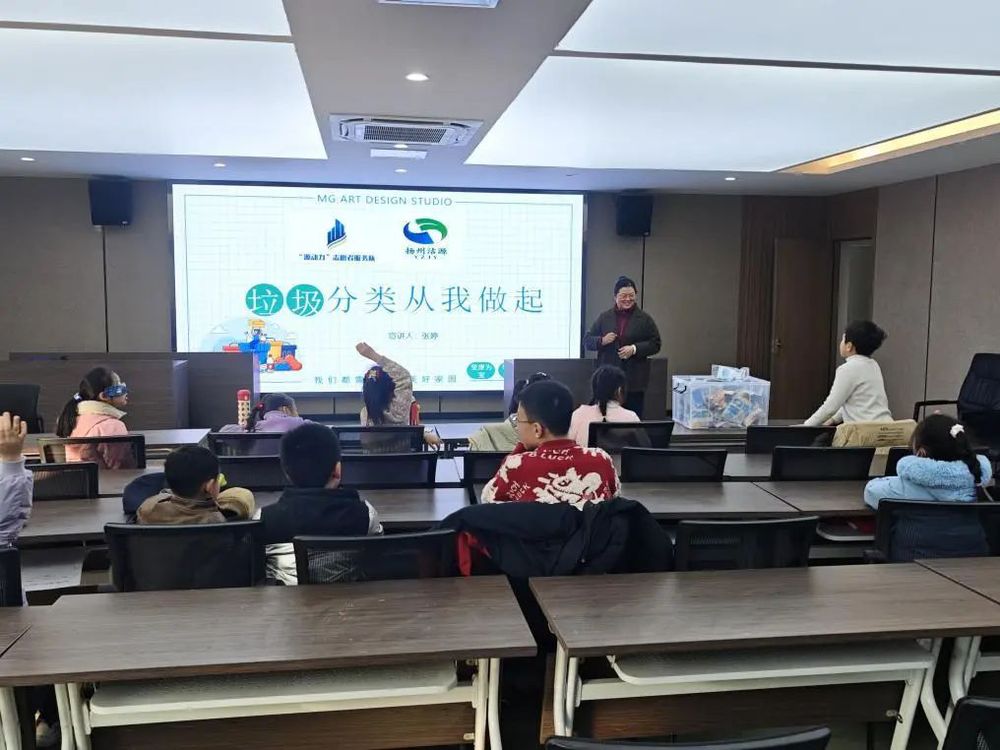“同學們,平常在家里面,有哪些場所會產(chǎn)生生活垃圾呢?最后又被運往哪里了呢?”。在社區(qū)多功能廳,“源動力”環(huán)保講師以垃圾分類知識科普為主題,通過圖文并茂的PPT課件,向小朋友們詳細介紹了當前垃圾處理的現(xiàn)狀、垃圾的分類以及如何做好垃圾分類等內(nèi)容,以小朋友生活場景為切入口,引導大家積極參與討論,現(xiàn)場氣氛熱烈而歡快。