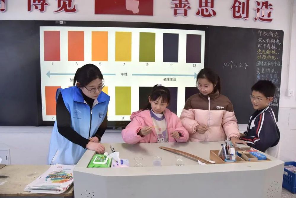 活動(dòng)現(xiàn)場,志愿者通過“理論+實(shí)踐”雙線并行的方式,向?qū)W生們普及水資源知識(shí)。理論環(huán)節(jié)中,志愿者以通俗易懂的語言講解了水資源的稀缺性、日常節(jié)水技巧以及長江流域水生態(tài)保護(hù)的重要性。實(shí)踐環(huán)節(jié)則設(shè)置“水的酸堿度”小實(shí)驗(yàn),學(xué)生們?cè)谥笇?dǎo)下動(dòng)手操作簡易酸堿度檢測(cè)小實(shí)驗(yàn),觀察不同酸堿度下試紙的變化,讓同學(xué)們深刻理解健康飲水的重要性。