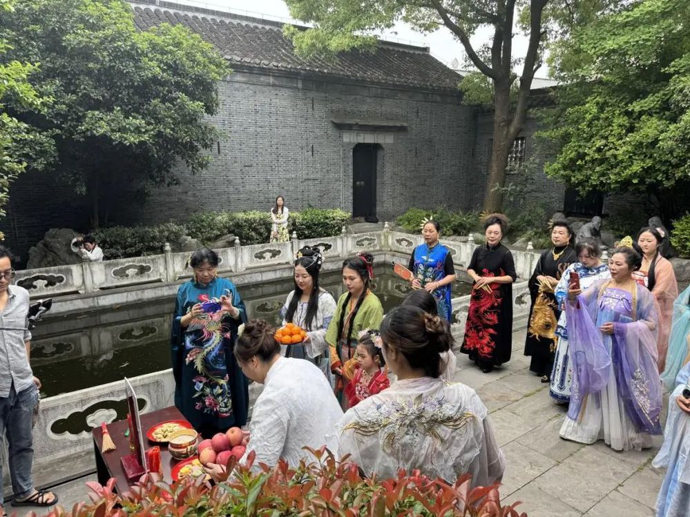 活動(dòng)現(xiàn)場準(zhǔn)備充分,一幅瓊花主題背景圖、擺放整齊的供桌、花神牌位、紅燭、香爐、線香,以及百花糕、鮮果、紅綢等物料一應(yīng)俱全?;顒?dòng)流程豐富,從禮花序開啟,助禮人員精心布花臺(tái),禮花人莊重獻(xiàn)花品,到主禮師頌花語,向花神表達(dá)敬意,再到眾人敬花香、賞花紅,最后嘉賓們一同嘗花糕,在歡聲笑語中完成了活動(dòng)的各個(gè)環(huán)節(jié)。