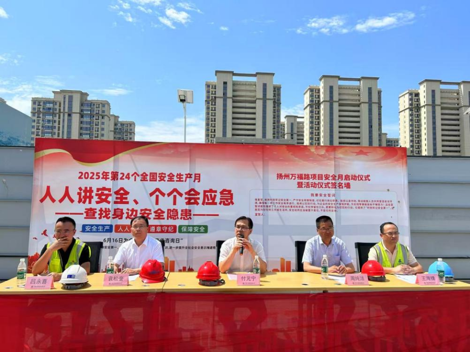 為深入貫徹落實(shí)安全生產(chǎn)責(zé)任制,扎實(shí)推進(jìn)安全生產(chǎn)工作,6月5日上午,上善公司在萬??焖俾窎|延建設(shè)工程現(xiàn)場(chǎng)舉行2025年“安全生產(chǎn)月”啟動(dòng)儀式。公司領(lǐng)導(dǎo)班子、各方參建管理人員及各施工隊(duì)組50余人參加活動(dòng)。