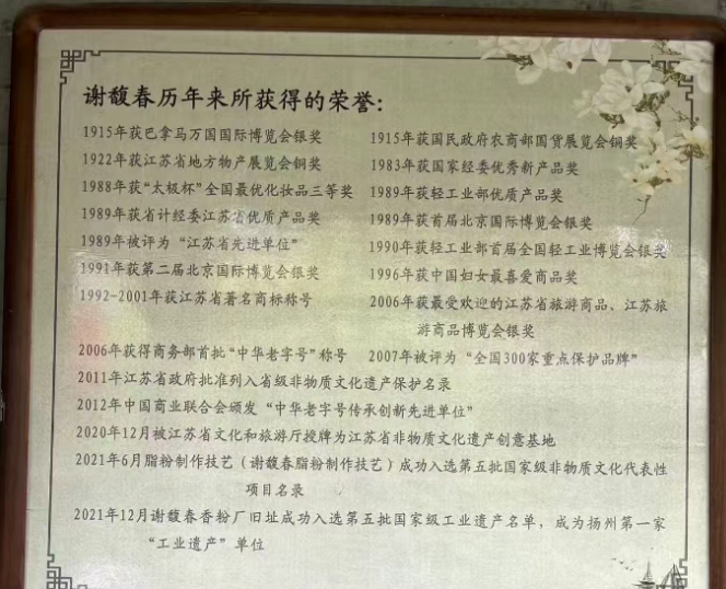馥園深處,謝箴齋先生的書房猶存墨香。案頭那本泛黃的賬冊,記載著民國初年的黃金歲月:梳頭油日銷百瓶,鵝蛋粉供不應(yīng)求,連上海灘的名媛都托人捎帶??少~冊里也藏著戰(zhàn)火的灰燼,抗戰(zhàn)時期的某頁,墨跡忽然洇開,像是淚水浸透了紙背——那是謝家人守著作坊,在敵機轟鳴中堅持手作的印記。記得1915年巴拿馬萬國博覽會上,當謝馥春的香粉盒被輕輕揭開,銀質(zhì)的獎?wù)略诋悋l(xiāng)的燈光下閃爍,那是中國美妝第一次以東方神韻征服世界的時刻。這一榮譽不僅奠定了謝馥春的國際品牌地位,也為中國化妝品行業(yè)爭得了榮譽。