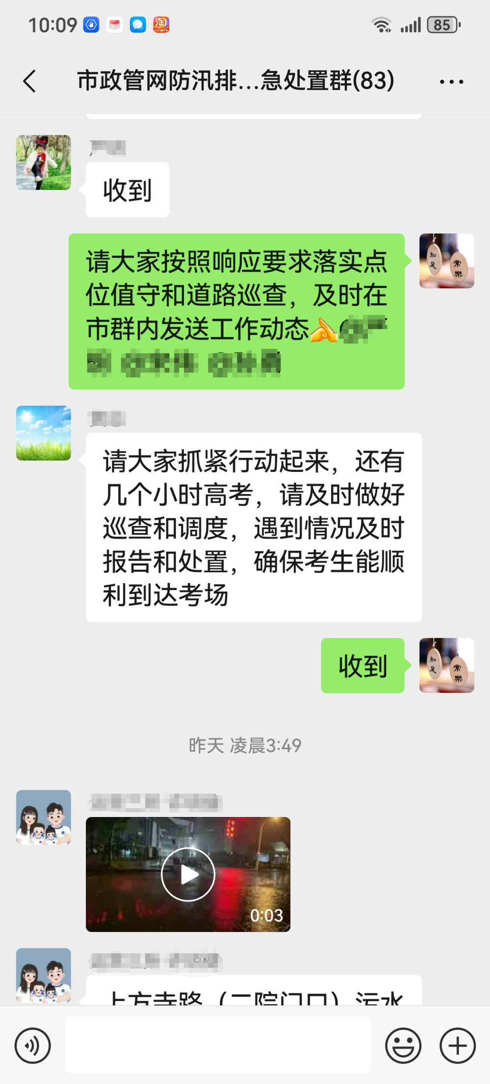 本次強降雨,管網(wǎng)公司共出動防汛人員80余人,防汛車輛設(shè)備10余臺,管轄范圍內(nèi)的污水設(shè)施均運行正常,所有積水點位均處置及時得當(dāng)。從雨前準(zhǔn)備到應(yīng)急搶險,從智慧監(jiān)測到物資保障,管網(wǎng)公司始終以“時時放心不下”的責(zé)任感,織密高考防汛安全網(wǎng),以實際行動展現(xiàn)國企擔(dān)當(dāng)。2025高考,管網(wǎng)公司祝愿每位考生:筆鋒所至,雨霽天晴!