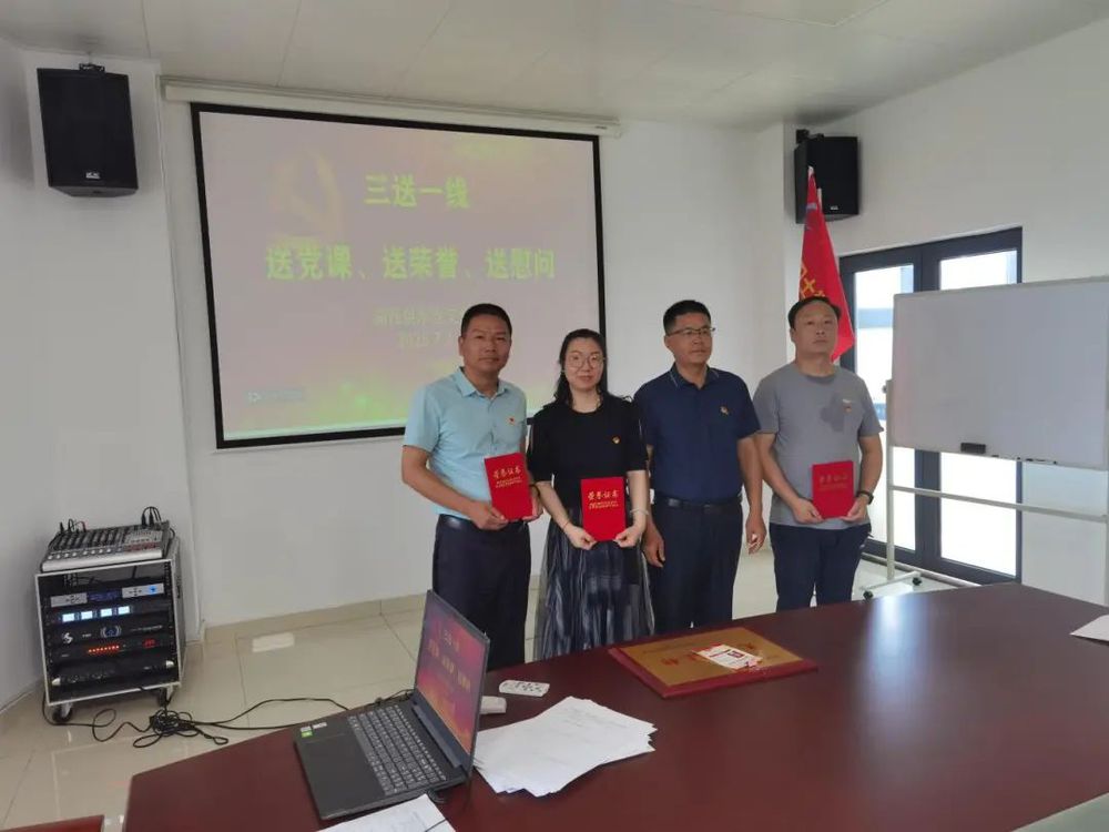 “七一”期間公司領(lǐng)導(dǎo)班子分赴各支部,為25名“優(yōu)秀共產(chǎn)黨員”、8名“優(yōu)秀黨務(wù)工作者”、3個(gè)“先進(jìn)黨支部”頒發(fā)榮譽(yù)獎(jiǎng)牌和證書并向他們表示祝賀,獲獎(jiǎng)的同志表示這份沉甸甸的榮譽(yù)既是對(duì)自己工作的肯定,更是鞭策,一定會(huì)珍惜榮譽(yù)、再接再厲,力爭(zhēng)再創(chuàng)佳績(jī),再立新功。獲獎(jiǎng)支部表示除了一如既往做好本職工作,還會(huì)充分發(fā)揮黨組織的戰(zhàn)斗堡壘作用和先進(jìn)支部的模范引領(lǐng)作用,盡職盡責(zé)為供水事業(yè)貢獻(xiàn)力量!