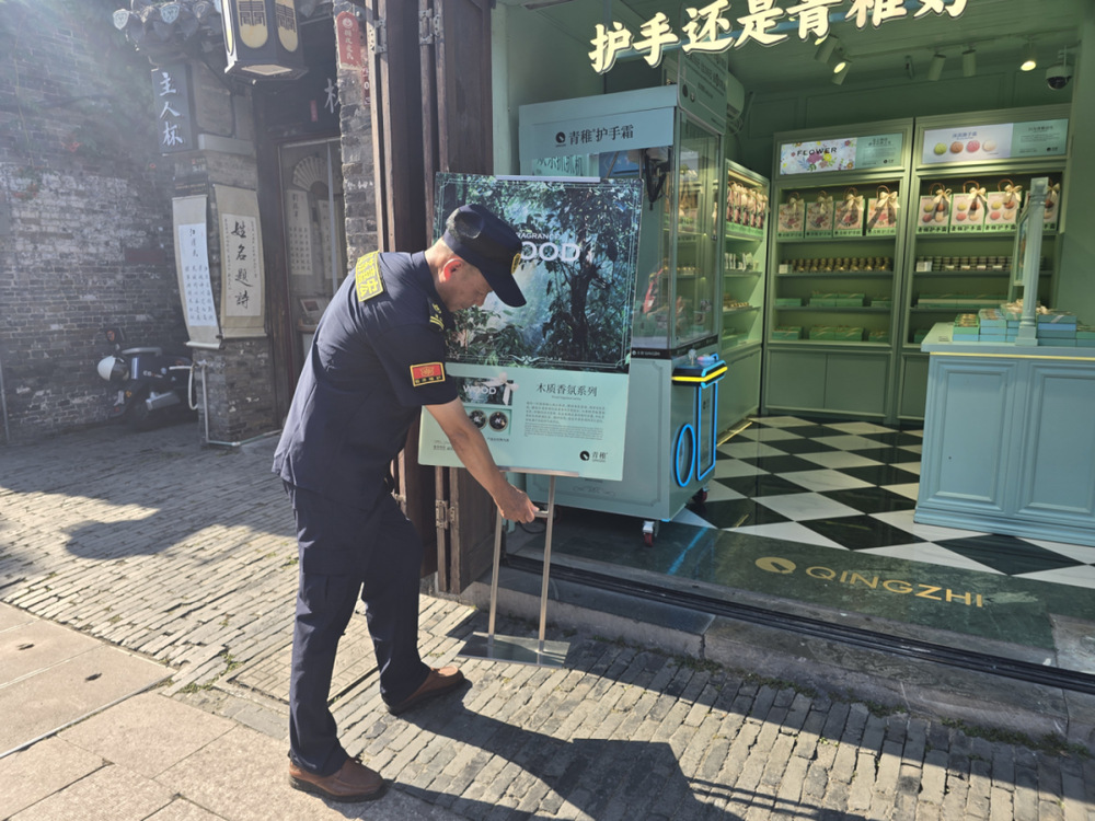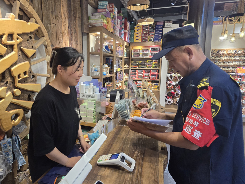劉師傅,這批新到的竹編得擺到陰涼處,您幫忙看看位置?街角老字號(hào)謝馥春的店員小李遠(yuǎn)遠(yuǎn)招呼。老劉應(yīng)聲上前,一邊幫忙挪動(dòng)貨架,一邊叮囑:上午游客少,先擺里側(cè),下午日頭毒了再往外移。商戶(hù)們總說(shuō),老劉的巡邏筆記里記著每家店的難處——哪家臺(tái)階高老人易絆倒,哪家遮陽(yáng)棚該加固,他心里都有本明白賬。