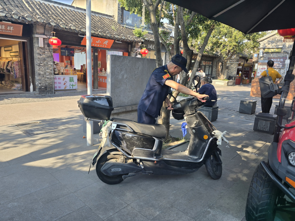 傍晚7點(diǎn),人流達(dá)到峰值。老劉站在電瓶車(chē)禁行區(qū)前,汗水順著脖頸滑進(jìn)衣領(lǐng)。師傅,通融下?孩子等著吃飯呢!游客舉著手機(jī)直播,鏡頭對(duì)準(zhǔn)老劉。他接過(guò)電瓶車(chē),推到200米外的電動(dòng)車(chē)停放點(diǎn):您看,這石板路是文物,電瓶車(chē)壓出裂縫就難修了。直播畫(huà)面里,彈幕突然刷起保安大叔好耐心支持文物保護(hù),老劉憨厚地?cái)[擺手,繼續(xù)引導(dǎo)下一輛。