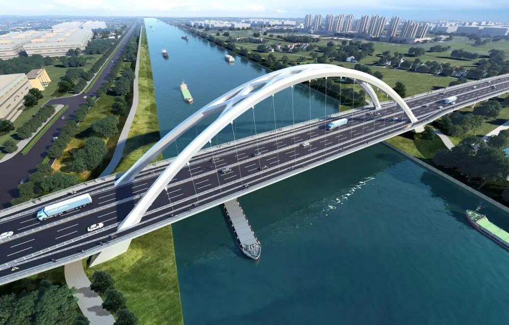除了核心的道路建設(shè),主要建設(shè)內(nèi)容還包含紅線范圍內(nèi)道路、橋梁、排水、交安、照明、環(huán)保、綠化及相關(guān)附屬設(shè)施等。其中,新建的上跨京杭大運(yùn)河大橋?yàn)轫?xiàng)目核心部分,總長(zhǎng)度約742m,主跨采用跨徑200m提籃拱橋設(shè)計(jì),既保證通行功能,又具備一定景觀價(jià)值。工程計(jì)劃總投資約4.09億元,建設(shè)工期約30個(gè)月。