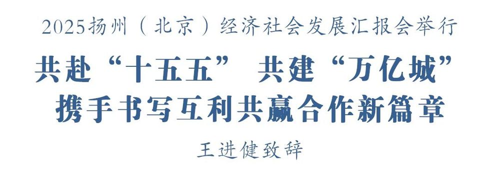 初冬北京,層林盡染。11月13日,2025揚州(北京)經(jīng)濟社會發(fā)展匯報會在京舉行,全面展示揚州開放發(fā)展最新成果,深度對接北京優(yōu)質(zhì)資源與創(chuàng)新力量,以奮進(jìn)之姿共赴“十五五”新征程,聚力推動揚州高質(zhì)量邁入“萬億之城”,攜手書寫互利共贏合作新篇章。市委書記王進(jìn)健出席并致辭。