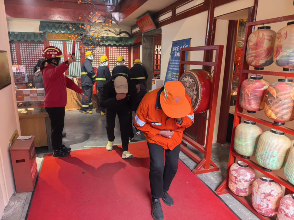 首先,組織參訓(xùn)人員進(jìn)行了電氣火災(zāi)滅火疏散實(shí)操演練,模擬場(chǎng)景為東關(guān)街98號(hào)冬榮園發(fā)生火情,當(dāng)班人員發(fā)現(xiàn)并大聲呼救、報(bào)警,醫(yī)療救護(hù)組人員接到應(yīng)急預(yù)案啟動(dòng)指令后攜帶應(yīng)急救護(hù)物資,對(duì)現(xiàn)場(chǎng)受傷人員進(jìn)行了臨時(shí)救護(hù)。同時(shí),滅火組第一時(shí)間趕赴微型消防站,穿戴消防戰(zhàn)斗服,使用滅火器進(jìn)行滅火,演練過程中,隊(duì)員們聽從指揮、統(tǒng)一調(diào)動(dòng)、密切配合,充分檢驗(yàn)了員工及商戶面對(duì)電氣火災(zāi)的應(yīng)急處置能力和協(xié)同作戰(zhàn)水平。