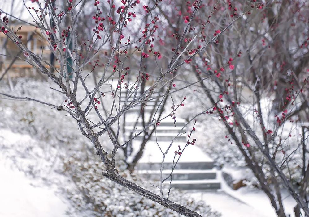 雪中紅梅點點