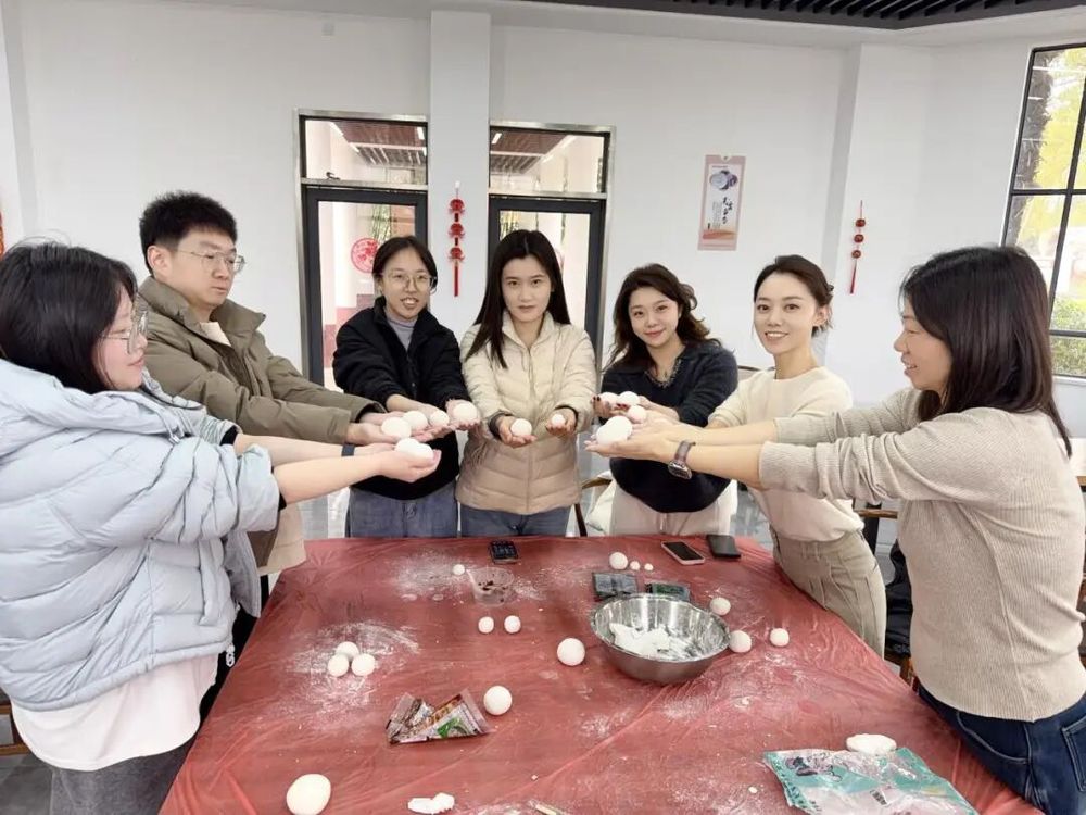 活動現(xiàn)場年味十足、熱鬧非凡?!跋矘肤[元宵”大家圍站在桌前,揉面團、放餡料、搓圓團,手法嫻熟又充滿樂趣,職工們互相請教、默契配合。雪白的糯米面在手中翻飛,一個個圓潤飽滿的湯圓整齊排列,不僅包裹著香甜的餡料,更承載著團圓美滿的美好寓意。